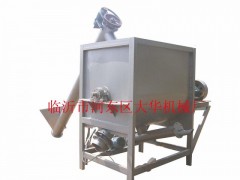 臥式U型單軸攪拌機,采用的U型半圓筒臥放的形式,中間穿插1層螺帶,軸承在U型筒兩端,通過減速機連接攪拌電機,同時配有上料提升機。物料通過一層螺帶和外部槳葉攪拌整體運動的形式達到混合均勻的效果。(請主機電機開關一定要配套倒順開關)