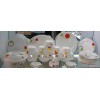餐具的主要規(guī)格為:28頭(配置:6盤 6碗 6碟 6勺 1斗碗 1飯勺 1牙簽筒 1煙缸)、38頭(配置:4盤 6碗 6碟 6小勺 6筷子架 1牙簽筒 1飯勺 1大飯碗 1煙缸 6筷子)和56頭(配置:10盤 10碗 10碟 10勺 10筷子架 1牙簽筒 1飯勺 1飯缽 1缸 1魚盤 1大圓盤) ,其他規(guī)格可以配置。單位還可來樣定做餐具,自己公司的‘面子’印制上去。景德鎮(zhèn)陶瓷餐具可以稱的上為"白如玉、明如鏡、薄如紙、聲如磬",