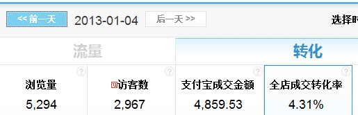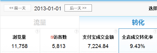 先說一下這個店鋪的基本情況,我是12月初去的這家店鋪,因為有一些時間而且這家店鋪的老板跟我又是朋友,就幫他來做一下店鋪的運營工作,剛去的時候店鋪銷量真的是蠻慘,一天只有幾單,pv只有幾百,而且只有幾個產品在賣,其他根本就沒有動過,當時老板半開玩笑的說,要是一天能賣10單就非常高興了。當時的數據截個圖給大家看看:
