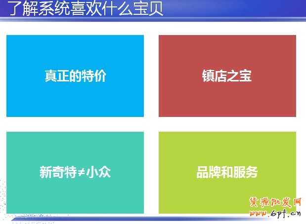 A:首先了解系統、消費者,喜歡什么樣的商品,性價比高,當季流行,同款少的商品 要的是真正的高性價比商品,而不是大量9.9包郵.大流量的平臺,不要拿那種小眾的商品來,轉化不好,浪費資源.