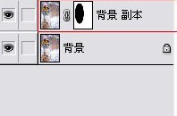 3、選中背景副本層上的蒙板,把選區部分填充黑色,如下圖: