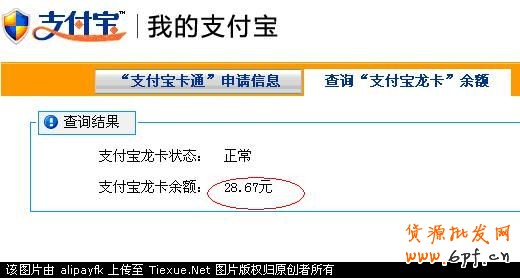 輸入支付寶支付密碼,還可以查詢到支付寶龍卡余額。