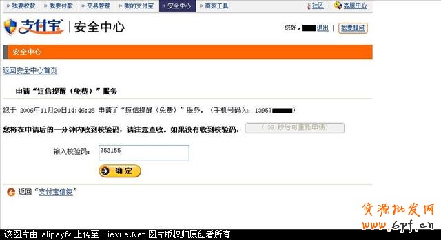 系統(tǒng)會發(fā)一個效驗碼到你的手機,收到以后,回填確認。