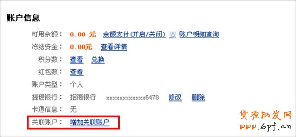 方法二:登錄支付寶賬戶(www.alipay.com)—我的賬戶—賬戶信息,增加關聯賬戶,進行關聯賬戶: