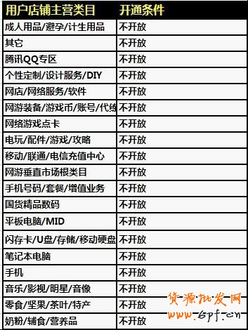 4.店鋪主營類目如為以下類目,應(yīng)符合相應(yīng)開通條件: