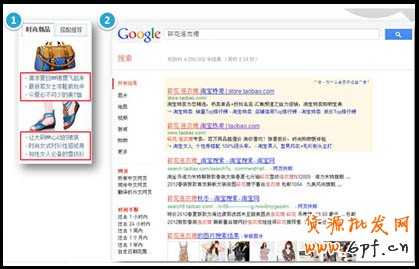 在雅虎等外網上直接展現幾個外投的寶貝,當用戶點擊這個寶貝時,進入到與該寶貝相關的一個寶貝集合頁,再次點擊寶貝就到了某個寶貝詳情頁。勾選了站外的定向推廣的寶貝,有機會以這種形式出現。
