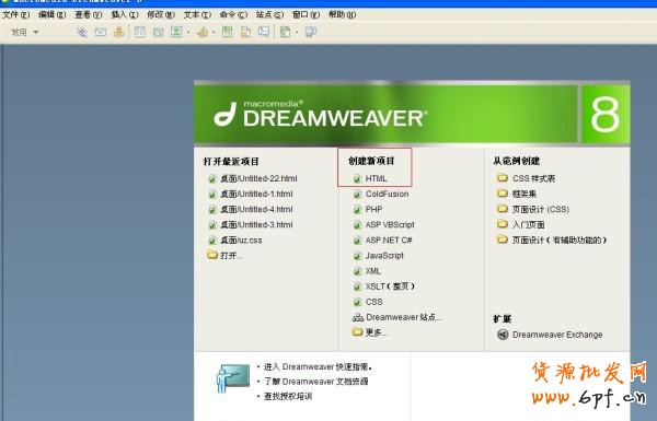 2、然后在“創(chuàng)建新項目”中點擊“HTML”,如下: