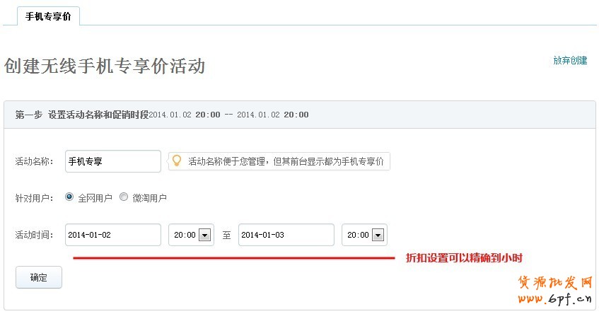 手機專享價還可以指定享受優惠的人群,目前支持全網用戶專享、微淘粉絲專享2類。