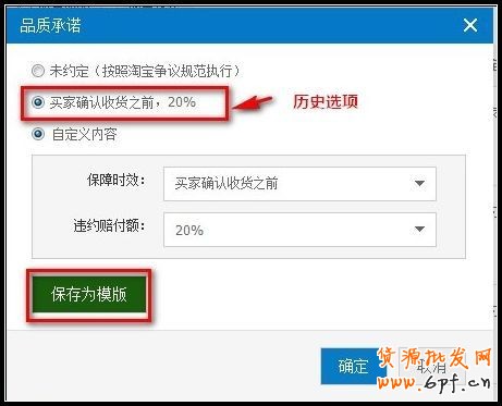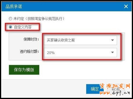 “品質(zhì)承諾是交易約定服務(wù)中的一種類型。該服務(wù)指賣家可結(jié)合商品和服務(wù)特點(diǎn),對(duì)商品的品質(zhì)(材質(zhì)、質(zhì)量)自定義服務(wù)履行前提和違約責(zé)任,一旦違背約定內(nèi)容,則須提供給消費(fèi)者承諾的補(bǔ)償。補(bǔ)償金額選項(xiàng)有:商品金額20% 、50% 、 70%、100%”。