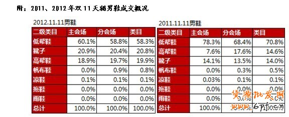 特別要指出的是,今年雙11大戰已經打響,許多男鞋商家已經進入全面備戰階段。去年大促時,低幫鞋、靴子和高幫鞋這三個品類的成交表現都還不錯。