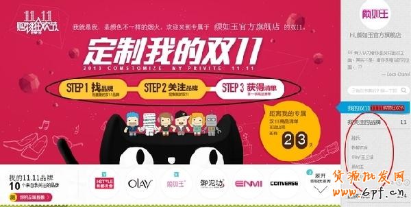 首先,雙11未到,你當前看到“定制我的雙11”頁面會發(fā)現(xiàn)所謂的“三步曲”(如圖黑圈所指),還有右側(cè)欄“我關注的品牌”(如圖紅圈所指,因我關注了11個,所以數(shù)量顯示11)!當前點擊其中一個品牌會顯示出該品牌的品牌動態(tài)和活動主題等簡單信息,我們可以大膽預測,頁面顯示的所謂“STEP3 獲得清單”的意思是說,到雙11時,你只要一點右側(cè)欄“我關注的品牌”列表中某個品牌,就會馬上出現(xiàn)這個品牌雙11要賣的產(chǎn)品列表(行內(nèi)叫商品承接頁面),這樣就免去了你在那寶貴的24小時里到處尋尋覓覓的“辛苦”和“低效”!第一板斧介紹完畢!
