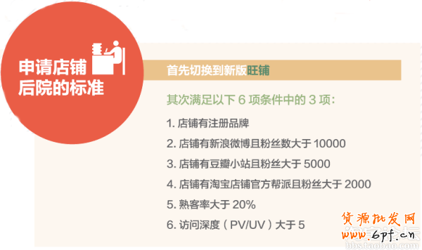 在全新上線的店鋪后院中,賣家除了可以展示自己的產品信息外,還能發布小報以及各種互動活動,有點類似豆瓣小組發起的活動。對于買家來說,逛賣家的 店鋪后院,可以進行詢問以及曬單分享。從店鋪后院的申請要求也可以看出,擁有新浪微博、豆瓣小站、官方幫派等的店鋪更能夠獲得申請資格。