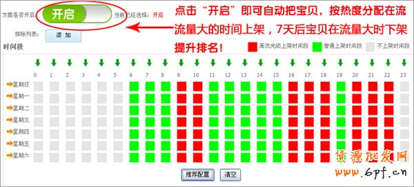 (1)上架時間安排:寶貝的上架時間安排,直接影響到的是流量。根據淘寶寶貝上架時間和排名規則。我們在流量大的時候安排寶貝上架,7天后寶貝會在同一時間下架,這樣在流量大時下架,排名靠前,店鋪的流量也會有很大的提升。通過助手“終極營銷”工具的功能,定時上架,可以讓寶貝在系統配置好的時間內,錯開上架時間,在最合理的時間上架寶貝。