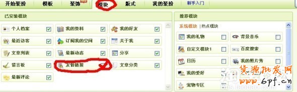 第三步:在推薦模塊那里找到友情鏈接,在后面打個勾。直接點保存,這時友情鏈接這個小模塊就會出現(xiàn)在你的主頁上的左上角,你可以把它放到你主頁上的任何地方。