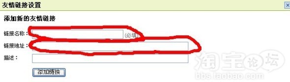 第四步:設(shè)置友情鏈接點編輯。會彈出一個對話框形式文本。鏈接名稱就寫你網(wǎng)店的店名例:茶話會,地址就寫你網(wǎng)店的網(wǎng)址然后點添加鏈接。