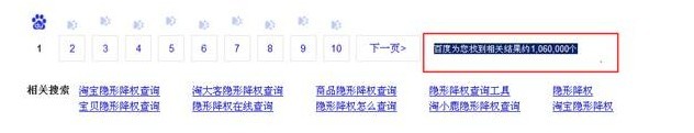 首先百度上輸入:隱形降權查詢這幾個關鍵字,搜索出來會發(fā)現(xiàn)找到相關結果約1,060,000個