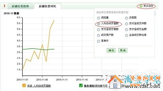 大家打開銷售總覽-店鋪經營對比,點擊更多指標,選擇人均訪問頁面數(shù)。就可以查看到自己和自己所在的一級類目均值對比。如圖中的賣家店鋪吸引力在逐漸上升,人均訪問頁面數(shù)在慢慢超過同類目均值。