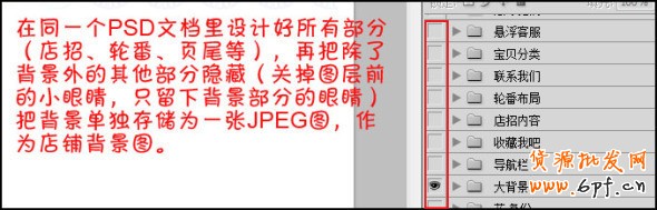 當(dāng)整體設(shè)計完成的時候,我們可以先設(shè)置店鋪背景。把除背景外部分隱藏,單獨把背景圖存為一張圖