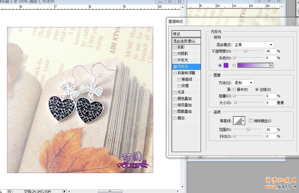 相框,筆者這里不建議找一些相框的素材,然后強(qiáng)行加上去,這樣的話,整張圖都限制在了相框里,沒有伸展度,很壓抑,而且也顯得很單板。這里可以簡單的用一下圖層樣式。作出一些效果,如圖:
