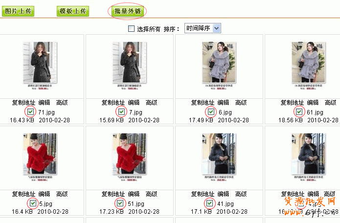 第3步:貼圖:在相冊里,勾選圖片。再點批量外鏈。如圖所示:
