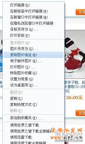 選擇“復制圖片地址”項,就可以得到這款寶貝的網絡圖片地址。