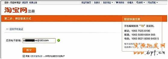 1、正常的進行淘寶賬戶的注冊,然后進入到要填寫手機的頁面時,點擊下面的“使用郵箱驗證”