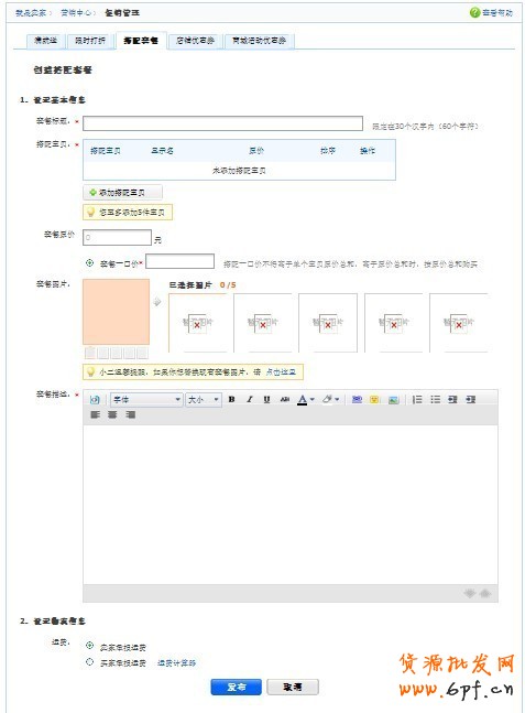 下面我們看到的整個套餐設置頁面,商家們是不是覺得很熟悉呢?有點像發布商品的頁面。接下來我們將整個頁面分解來看。
