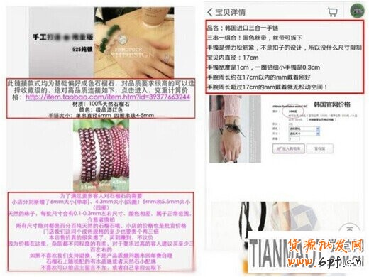 手機詳情頁的制作,是增加無線端寶貝和店鋪的加權點之一,為店鋪引流的武器所向。當我們查看沒有做手機詳情頁的寶貝時,因為同步PC的詳情頁的原因,會出現字體不整齊、圖片動來動去,體驗效果不佳。重新做了手機寶貝詳情頁后,圖片、文字將更清晰、有條理,用戶體驗更好。