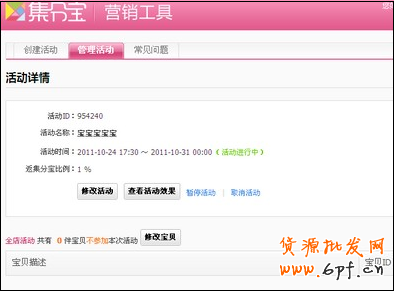 如需選擇更多商品參加,可考慮創建全店優惠活動(批量設置寶貝活動),默認所有商品寶貝都執行返積分優惠,(虛擬商品不參加活動請手動設置為黑名單商品不參加返集分寶商品)若有其它寶貝選擇不參加活動也可以通過設置為黑名單商品實現不參加折扣和返集分寶活動;