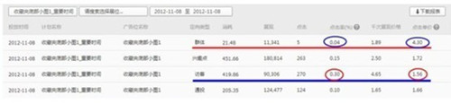 報表中高點擊率的圖片大家也會發(fā)現(xiàn)CPM價格差不多的情況下,點擊成本是下降的,點擊率越高,點擊成本越低。