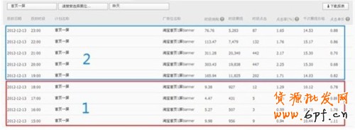案例:日預(yù)算1000元/計劃——淘寶首頁一屏右側(cè)BAN(300*100)——訪客定向