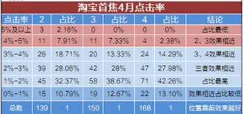 淘寶首焦4月點擊率統計表