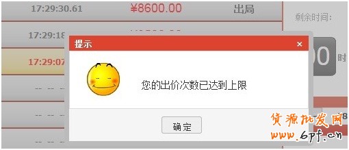 A: 當您的出價次數(shù)已經滿了,系統(tǒng)會彈出” 您的出價次數(shù)已達到上限”的文案提示.
