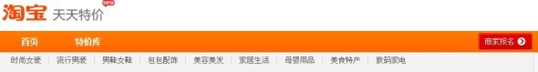 一、淘寶網(wǎng)天天特價(jià)首頁( tejia.taobao.com)導(dǎo)航欄右側(cè)商家報(bào)名
