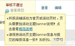 結果banner 沒有放上去,審核不通過【促銷匯報名規則:http://bangpai.taobao.com/group/thread/15115514-277802727.htm?spm=0.0.0.117.h7ZOHa需要仔細看一下哦!!】