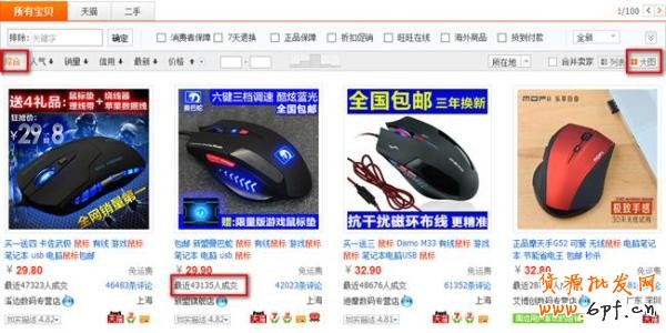 當前非銷量排序大圖模式結果頁:(綜合排序下舉例)