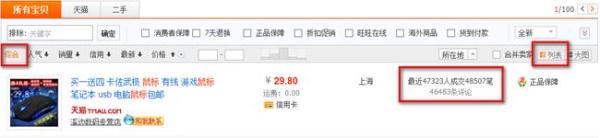 當前非銷量排序列表模式結果頁:(綜合排序下舉例)