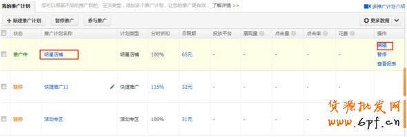 在這里您可以看到當前賬戶下所有的推廣計劃的概況。可對推廣計劃進行操作設置。