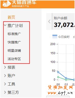 導航位于首頁左側,使用導航可以方便得找到直通車操作平臺的相關設置,目前導航主要包含:推廣計劃、報表、賬戶、工具以及第三方。點擊一級導航將會顯示其下的所有二級導航分類。