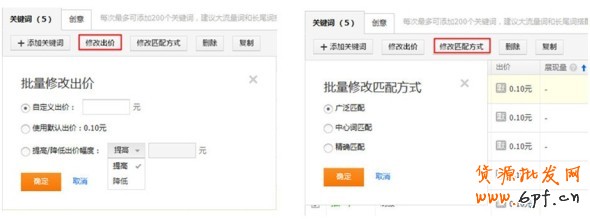 關鍵詞批量修改出價、匹配方式分開,批量修改出價中增加提高/降低出價幅度功能。
