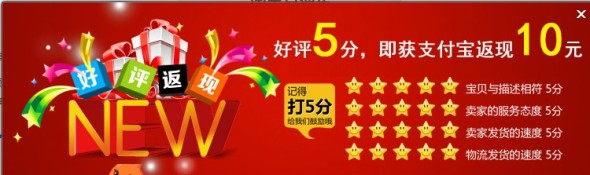 影響寶貝轉化中,其他顧客的評價也是至關重要的,如果差評很多,其他消費者在購買的時候就會有多重的顧慮,而好評很多的話,消費者會有一種從眾心理進而購買寶貝。為了增加好評,可以做好評返現、好評返券的活動。這樣就可以增加好評。