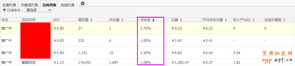 寶貝定向投放的“興趣定向”點擊率相對較高且轉化情況也是比較理想的,可以從這方面著手提高點擊率進而優化提升roi。