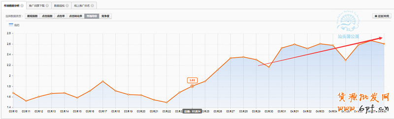 以上是小編優(yōu)化的拖把類目的一款寶貝,從3.31日開始,10分的關(guān)鍵詞質(zhì)量得分“duang”就下滑了,質(zhì)量得分的下滑也直接影響到ppc,如下圖,ppc上升后,展現(xiàn)量也沒(méi)有明顯上升。
