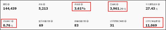 可以看出在消耗差不多的情況下,cpc從最開始的1.14元到現在的0.76元,cpc是下降了,點擊率從0.68%到3.61%,點擊率可謂是蹭蹭的上漲。