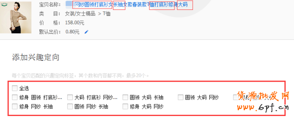 3) 興趣標簽就像關鍵詞一樣,可以將轉化好的標簽,組合到推廣標題中,這樣增加了寶貝在這個標簽上的權重,有助于提高轉化率;