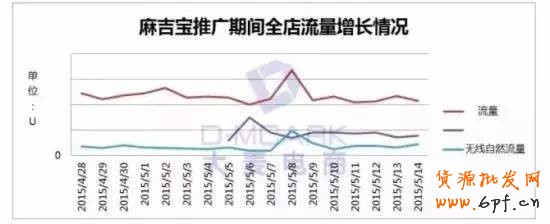 通過流量曲線圖,我們可以看到,店鋪的PC流量基本是處于持平甚至有輕微下降的趨勢(shì)的,而在麻吉寶推廣一段時(shí)間以后,可以看到無線的自然流量有上升的趨勢(shì),而且是可持續(xù)的。而如果結(jié)合上店鋪的無線活動(dòng)開展,對(duì)于無線轉(zhuǎn)化也會(huì)有一定的幫助。先付費(fèi)推廣,加權(quán)后獲取更多的免費(fèi)流量,進(jìn)而利用流量開展活動(dòng),帶動(dòng)全店轉(zhuǎn)化,形成良性循環(huán)。