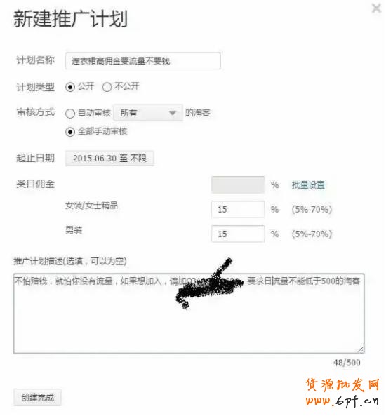 先自建高傭金計劃,然后要全部手動審核,這個傭金可以設的賠一些錢,因為總比直通車合算。比如進價是40元的女裝,賣80元,你可以返60%的傭金出去。大家應該很容易理解了。