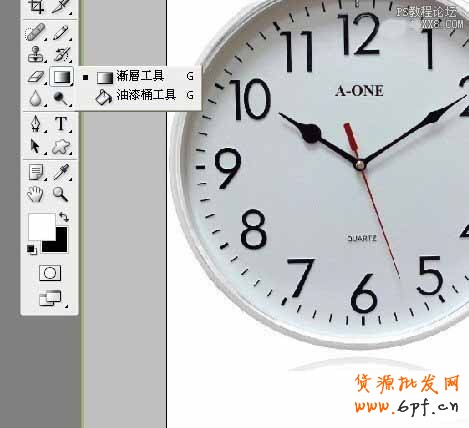 7. 選擇的漸層是預設組的“前景到透明”,因為前景是白色,所以也就是“白色到透明”。