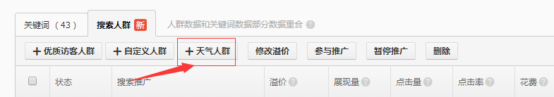 在搜索人群下面的人群選項框中直接點擊“天氣人群”,就可以進入下面的設置頁面: