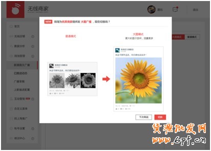2、符合大圖模式發(fā)送資格的優(yōu)質(zhì)商家首次登陸會(huì)自動(dòng)出現(xiàn)大圖模式浮層,點(diǎn)擊切換即可進(jìn)入大圖模式;